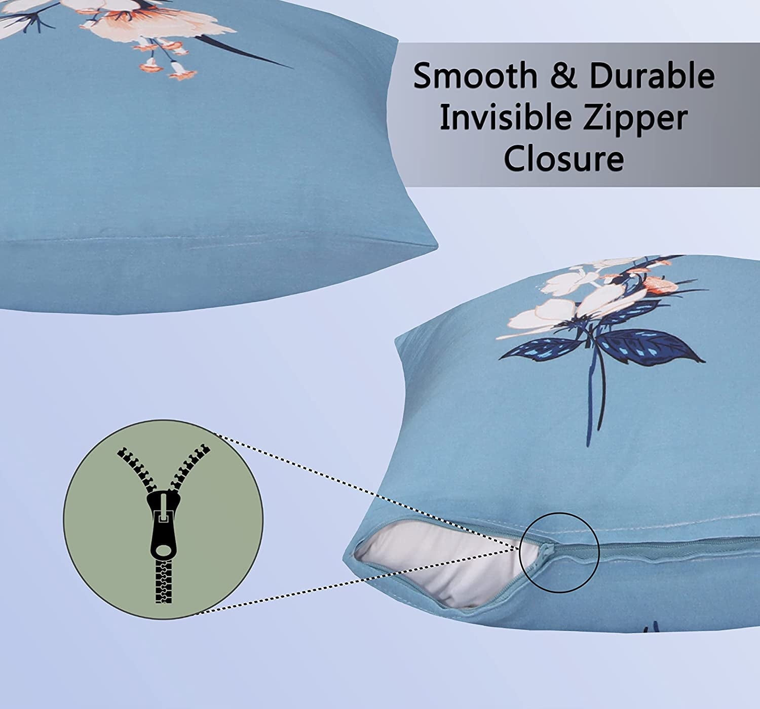 Cotton Fabric Throw Pillows, 2 Pack (18"x18") Cover & Insert: Blue, Orange Blush Floral