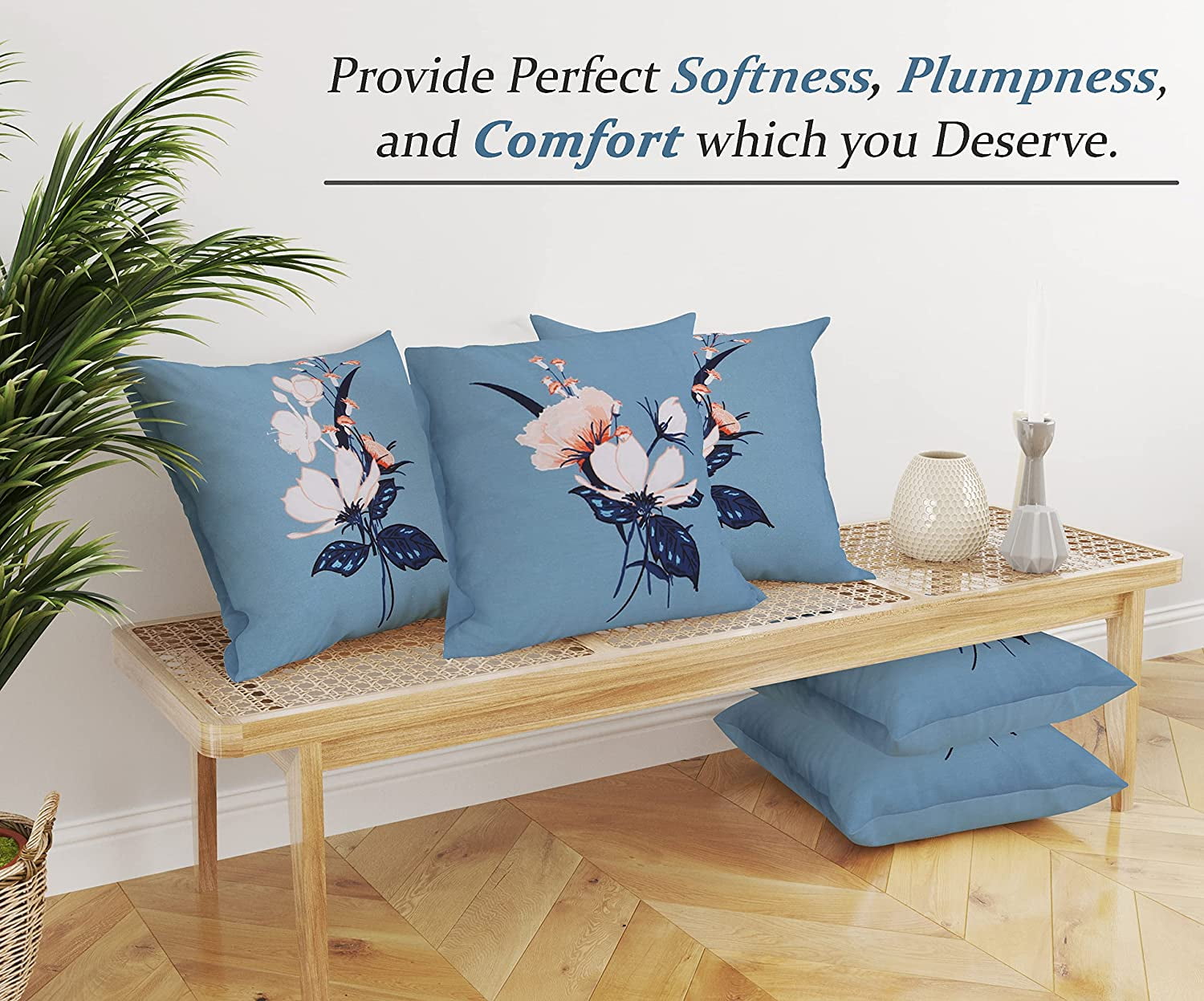 RACDO - 2 Pack 100% Cotton Fabric Throw Pillows, 2 Pack 18x18 Soft, Cozy Square Decorative Pillows for Sofa, Couch Pillows, Bed, Living Room Luxury Cushion Covers Including Insert; Blue, Orange Blush Floral
