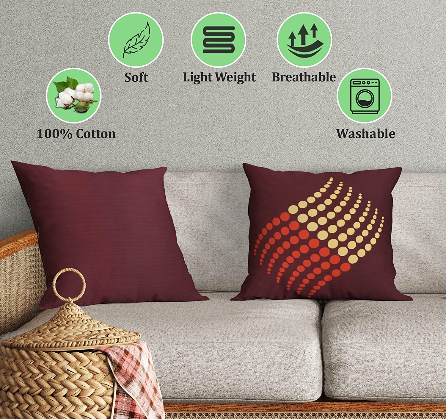 Cotton Fabric Throw Pillows, 2 Pack (18"x18") Cover Only, Burgundy