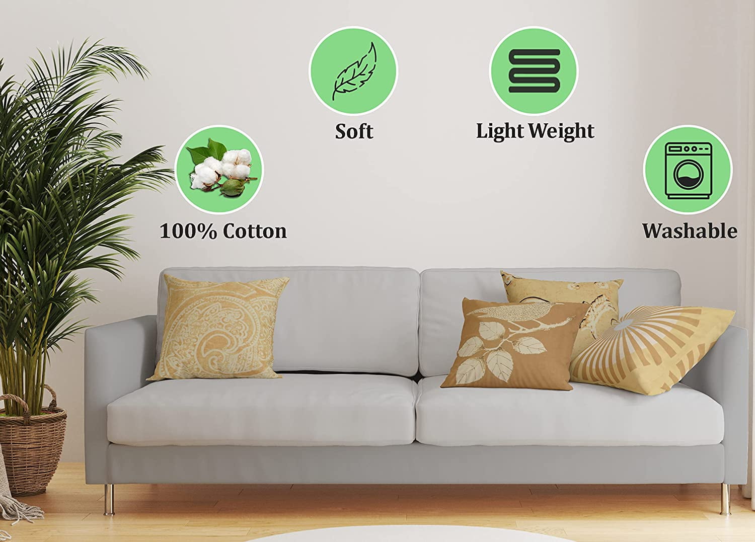 RACDO - 4 Pack 100% Cotton Fabric Throw Pillows, 16x16 Soft, Cozy Square Decorative Pillows for Sofa, Couch Pillows, Bed, Living Room Luxury Cushion Covers Including Insert; Golden Floral