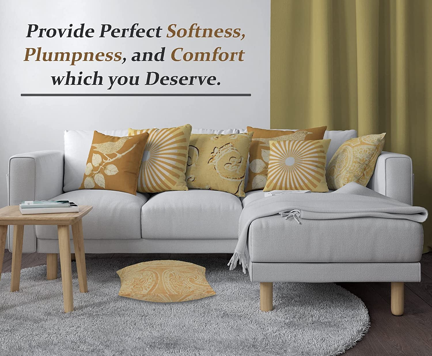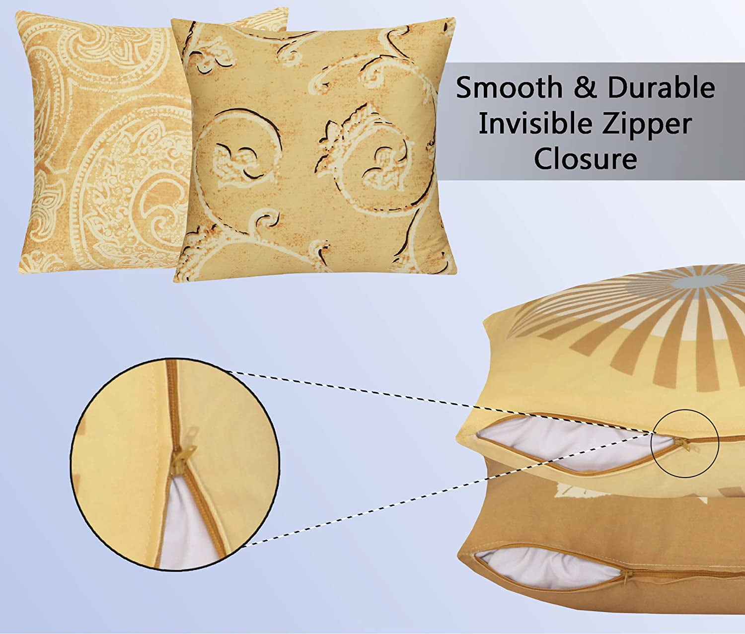 Cotton Fabric Throw Pillows, 4 Pack (16"x16") Cover & Insert, Golden Floral