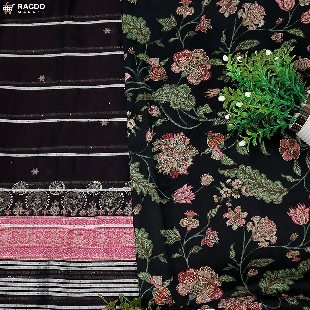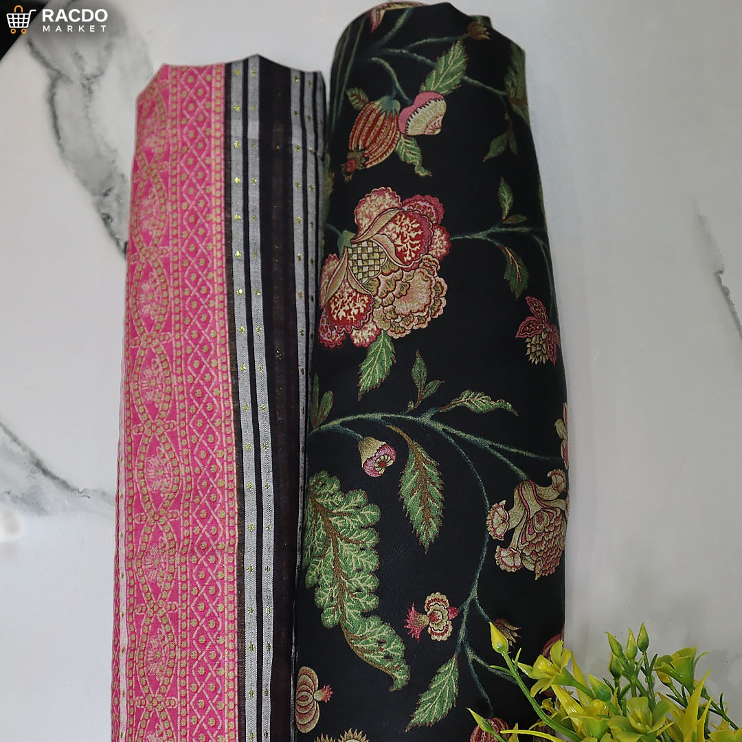 This is an unstitched suit, so you can tailor it exactly to your size and style. We focus on fabric quality, clean print/colour, and neat finishing so the final stitched look feels rich, comfortable, and elegant.